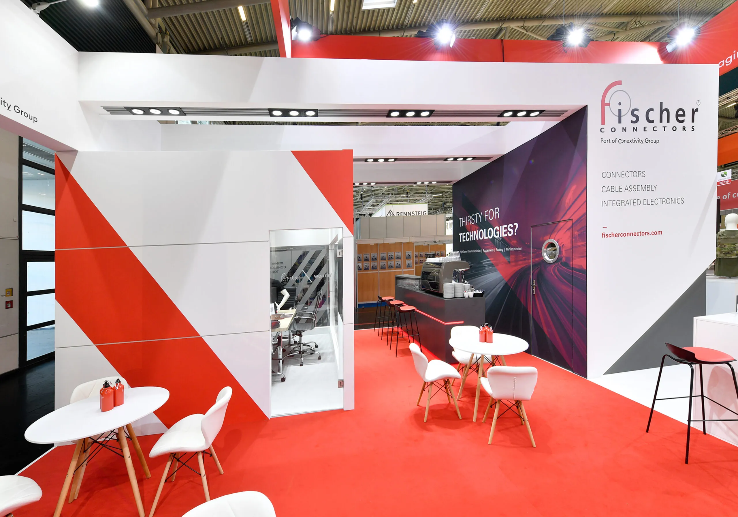 Every event offers a distinctive challenge and opportunity. Our dedicated Focal team thrives on this diversity, continually pushing boundaries to craft design concepts that are both visually compelling and functionally effective. We seamlessly weave Fischer Connectors’ corporate colours into our designs, delivering a unified and immersive brand experience that resonates with event attendees.