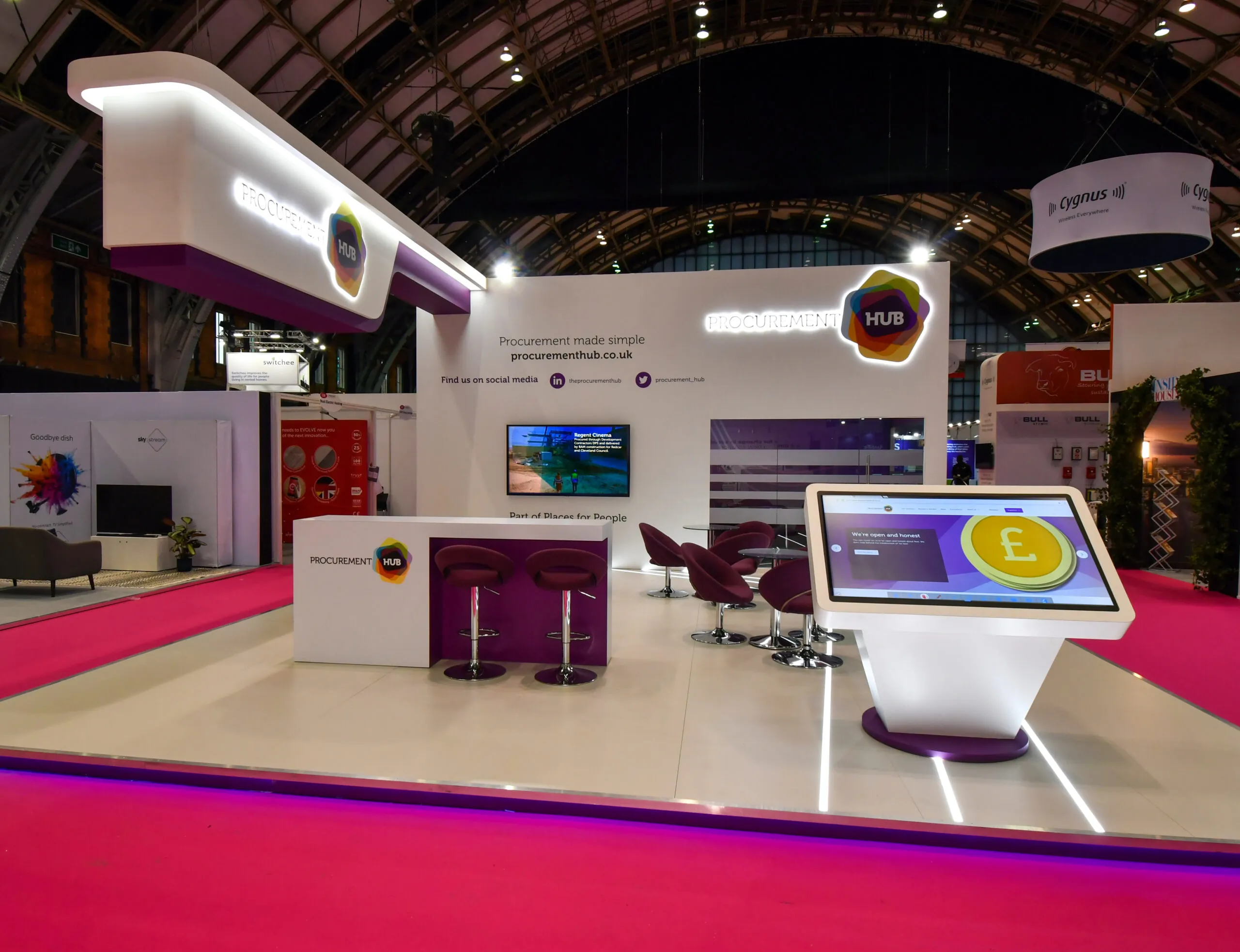 Modular Design: Our team developed a modular stand concept that provided flexibility and scalability, allowing Procurement Hub to seamlessly adapt their presence to different exhibition environments. This approach ensured consistency in branding and maximized the impact of their exhibition presence.