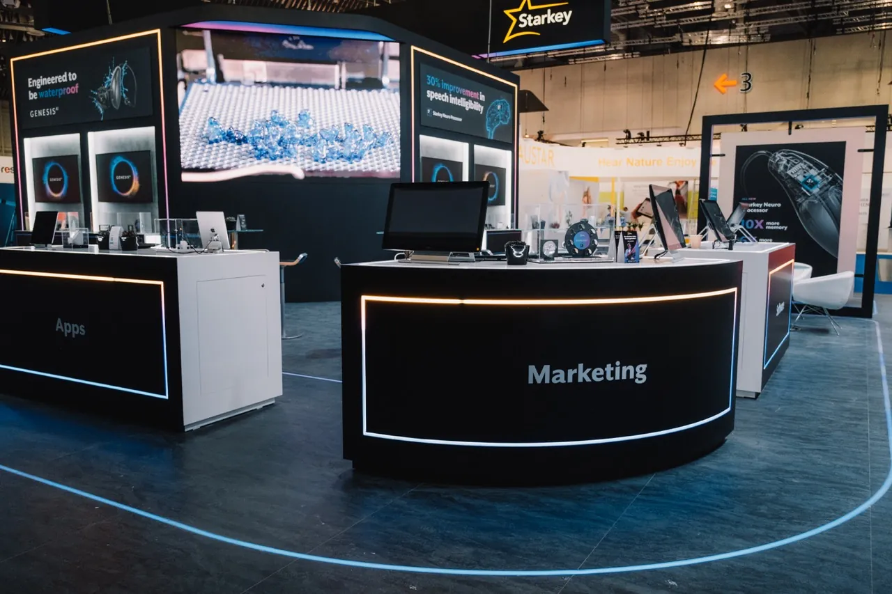A key performance indicator for the 2023 event was focused on enhancing their international presence, building brand awareness, and strengthening relationships with key stakeholders in the hearing healthcare industry. The new stand design successfully communicated both their rebranded identity and evolving product portfolio on the global stage, positioning Starkey Hearing Aid technologies as a leading global player with a promising future in personalized hearing healthcare and digital innovation.